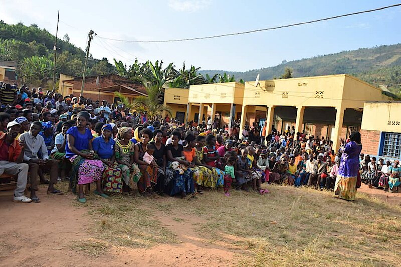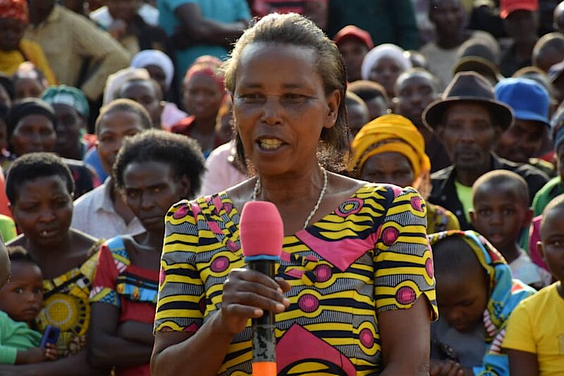 Guverineri w’Intara y’Amajyaruguru Nyirarugero Dancille aganiriza abaturage bo mu Karere ka Gakenke ku bijyanye n’urugomero rw’amashanyarazi rwa Nyabarongo II