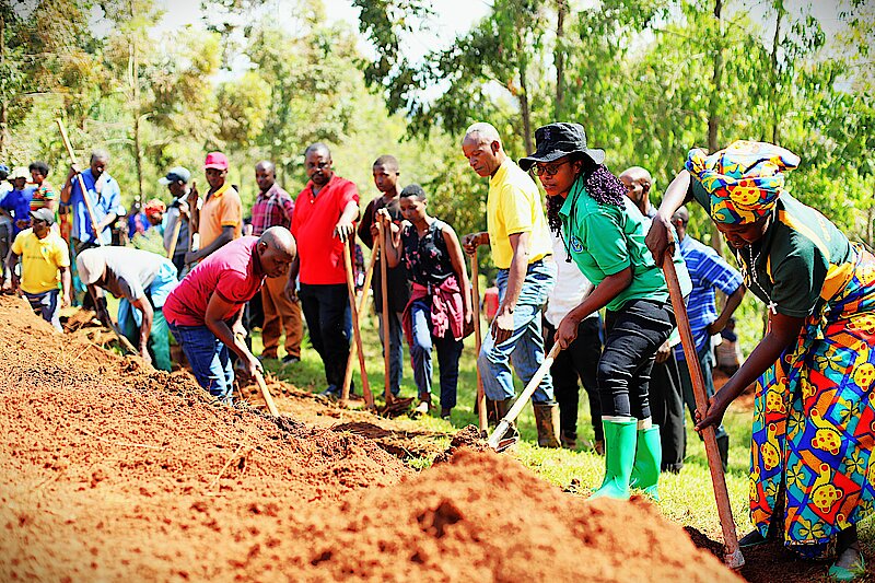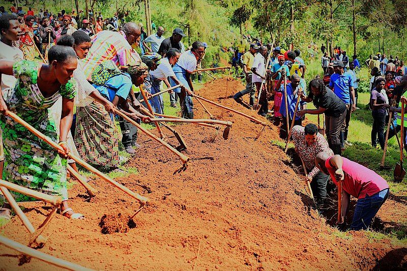 Itsinda ry’Abasenateri mu Nteko Ishinga Amategeko y’u Rwanda bifatanyije n’abayobozi, Abaturage b’Akarere ka Gakenke n'inzego z'umutekano mu muganda rusange usoza ukwezi k’Ugushyingo 2024, bacukura imirwanyasuri mu rwego rwo gukumira Ibiza no kurengera ibidukikije.
