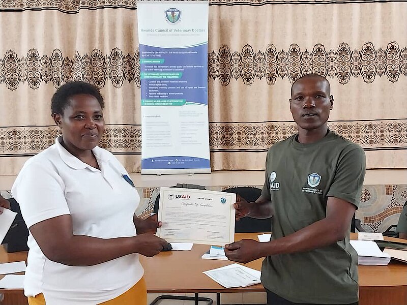 Mujyambere Félicien, umuvuzi w’amatungo mu Karere ka Gakenke na Nyirabuntu Donatille umujyanama w’ubworozi mu Karere ka Burera ni bamwe mu bamaze amezi 6 bahugura aborozi ku kwita ku matungo magufi.