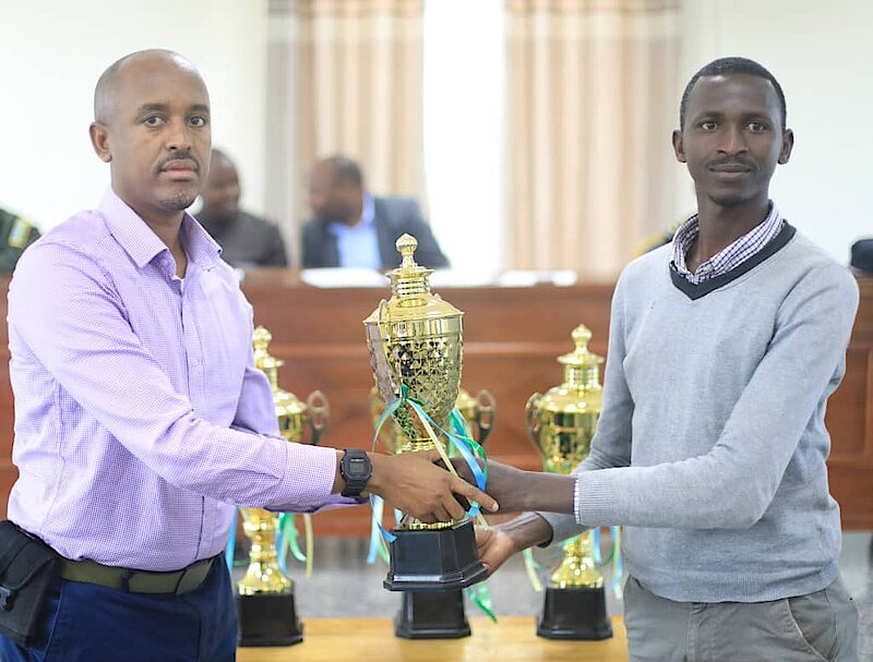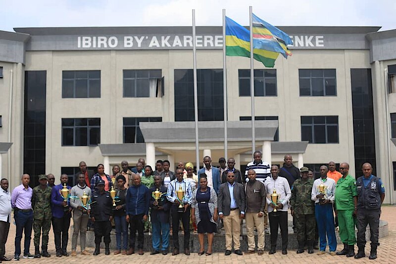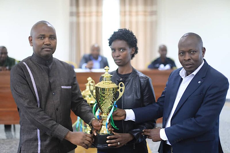 Ibyo bihembo, bigizwe n’igikombe giherekejwe n’Amafaranga ibihumbi 100, byahawe buri rwego rwitwaye neza mu kwesa imihigo.