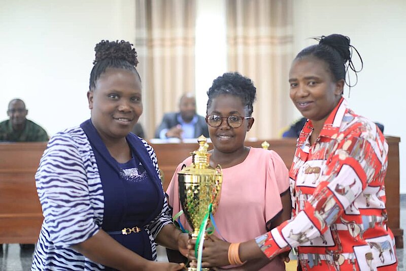 Igikombe giherekejwe n’amafaranga byahawe abesheje imihigo bari biyemeje y’umwaka wa 2022-2023