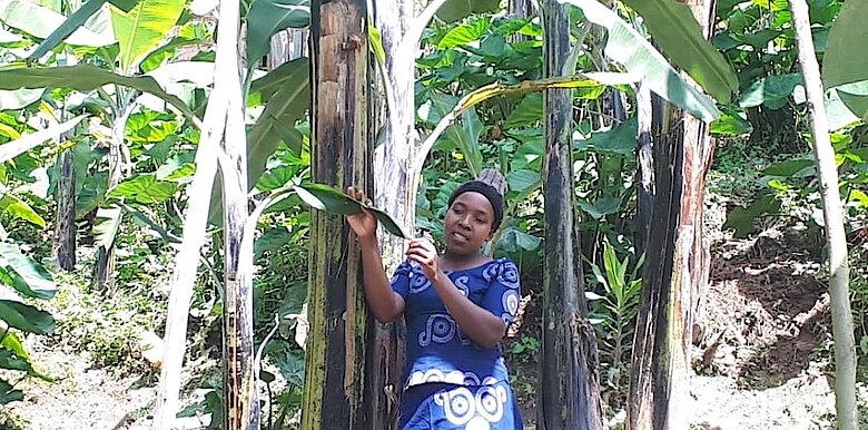 Tugizimana Agnes w’umwana umwe akaba umuhinzi-mworozi utuye mu Kagari ka Mataba, mu Murenge wa Mataba avuga ko yiteje imbere abikesha ubuhinzi n’ubworozi aho ahinga urutoki rwa kijyambere ndetse akanorora inka ategerejeho umukamo ndetse n’ifumbire.