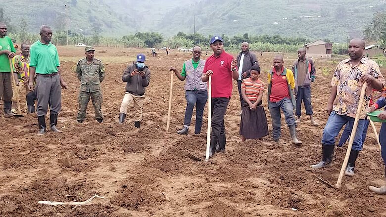 Umuyobozi w’Akarere wungirije ushinzwe Iterambere ry’Ubukungu yasabye abahinzi kwihutisha igikorwa cyo gutera imbuto bitarenze tariki 15/09/2022, gutera imbuto yemewe no kuzirikana ko mu cyobo kimwe haterwamo intete 2. Kandi ko bakwiriye kubahiriza igipimo cyagenwe cy'ifumbire ishyirwa mu cyobo (Imvaruganda).