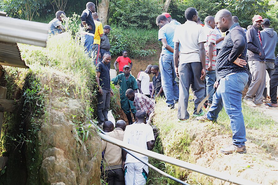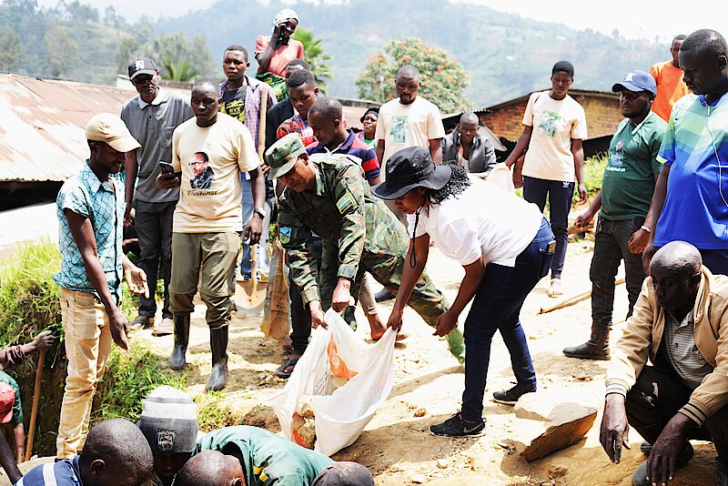 Umuyobozi w’Akarere Madame Mukandayisenga Vestine, Umuyobozi w'Akarere Wungirije ushinzwe Imibereho Myiza y'Abaturage, Madame Uwamahoro Marie Thérèse, inzego z'Umutekano n'abandi bakozi b'Akarere bakaba bifatanyije n'urubyiruko n'Abaturage b'Akagari ka Rusagara, Umurenge wa Gakenke, batunda amabuye n'ibindi bikoresho byo gukora imihanda n'ibiraro byari byarangiritse.