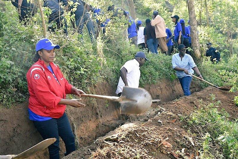 Ati: “Ubushake mufite n’uburyo mwitabira ibikorwa nk’ibi kimwe n’ibindi by’umuganda bibera hirya no hino, tubasaba gukomeza kubigira umuco, muhamya intego y’uko amaboko yanyu arizo mbaraga z’Igihugu. Ibi ariko binajyana no kwitabira izindi gahunda za Leta zirimo nko kwishyura ubwisungane mu kwivuza ku gihe, kuko hatabayeho gusigasira ubuzima n’ibyo bikorwa nk’ibi ntibyashoboka."
