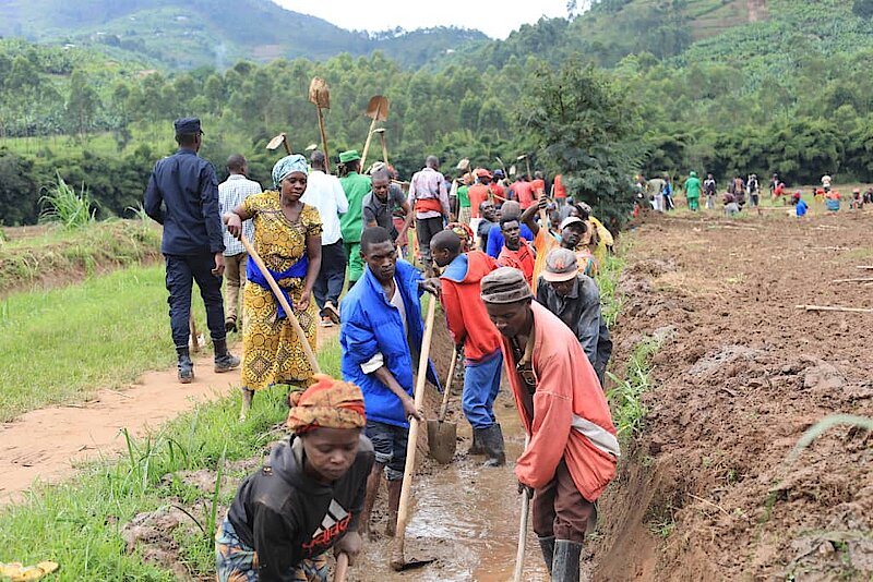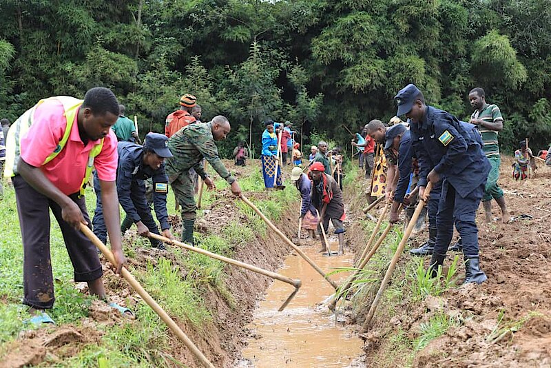 Mu Karere ka Gakenke, abaturage bitabiriye umuganda bifatanyije mu gutunganya imigende iyobora amazi mu gishanga cya Gashenyi, kiri ku buso bwa Ha 65. Iki gishanga giherereye mu Mudugudu wa Busaro, Akagari ka Taba mu Murenge wa Gashenyi, ubuso bunini bw’ubutaka bwaho muri kino gihembwe cy’ihinga, bwahujwe ku gihingwa cy’ibishyimbo bigufi, kikaba kimwe mu byihanganira ikirere n’ubutaka byo muri kano gace.